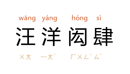 ⒈ 形容人的气度或文辞宽宏奔放。宋·陆游〈吕居仁集序〉:「故其诗文,汪洋闳肆,兼备众体,间出新意,愈奇而愈浑厚。」也作「汪洋自恣」、「汪洋自肆」。