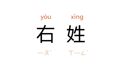 ⒈ 古代以右为上,故称贵族豪门为「右姓」。