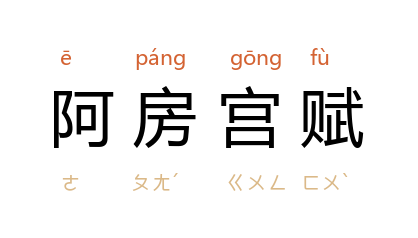 ⒈ 赋篇名。唐代杜牧作。阿房宫是秦始皇时所建,未竣工而秦亡,被项羽焚毁。赋中运用丰富的想像,极力形容阿房宫的壮丽和宫廷生活的奢侈荒淫,进而指出秦不惜民力,只知穷搜民财,终于亡国。意在讽谕唐代统治者借鉴历史教训。辞藻华美,语言流畅,结尾含蓄有味。
