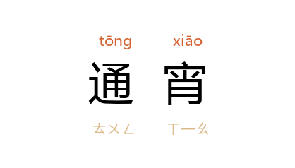 《文明小史·第四四回》:「镇日价招得些上中下三等人物,前去饮酒作乐,真正是笙歌彻夜,灯火通宵。」