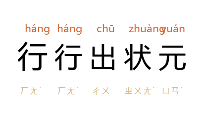 引《儿女英雄传·第一一回》:「姑爷,俗话儿说的:『行行出状元』,又说:『好汉不怕出身低』,那一行没有好人哪?」