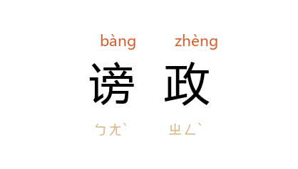 引《左传·昭公六年》:“今吾子相 郑国,作封洫,立谤政,制参辟,铸刑书,将以靖民,不亦难乎?”唐 张九龄 《大唐金紫光禄大夫行侍中兼吏部尚书弘文馆学士赠太师正平忠宪公裴公碑铭》:“且媚于人者,必好其威福;贤於事者,必羞其谤政。”