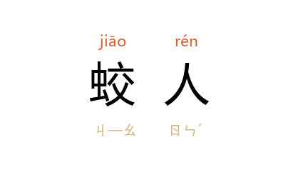 引晋 木华 《海赋》:“其垠则有天琛水怪,蛟人之室。”《文选》作“鮫人”。 南朝 梁 任昉 《述异记》卷上:“蛟人,即泉先也,又名泉客。”宋 梅尧臣 《王安之寄石榴》诗:“割之珠落盘,不待蛟人泣。”清 吴伟业 《包山寺赠古如和尚》诗:“咒钵蛟人听,弹棋鹤子惊。”