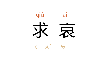 引冀 嫉其宠,遣客夜盗其家,欲刺贵人母。母入宫求哀,因言 冀 之罪。”明 伍余福 《苹野纂闻·终南勇士》:“有老嫗讶之曰:‘尔何来耶?吾儿勇且武,遇之则死,宜速去!’二贾求哀,老嫗不得已而止之。”清 纪昀 《阅微草堂笔记·如是我闻三》:“故我得而佑之,非以尔叩拜求哀也。”