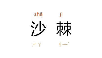 ⒈ 落叶灌木或小乔木。枝灰色,常有刺。叶线状披针形,被银色鳞毛。花极小,带黄色。果实广椭圆形,橙黄色。耐旱,耐寒,生长迅速,根系特别发达,不择土壤,是一种优良的防风固沙、保持水土的植物。叶和果可做饲料。