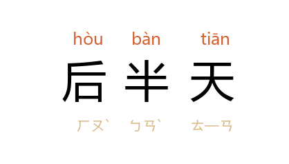 引《儿女英雄传》第一回:“今日没事,有一天的工夫呢,我后半天进城不迟。”