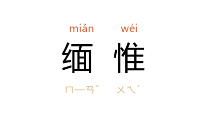 引宋 秦观 《秋夜病起怀端叔作诗寄之》:“缅惟情所亲,佳辰谁与共。”明 汪弘滏 《寄谢同门曹翼宸》诗:“缅惟束髮初,南北鲜停骑。”清 魏源 《题嘉禾冯广文登府陔园图》诗:“缅维 汉 周 磐,兴起孔邇诗。”