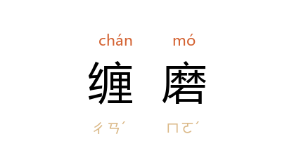 引《孽海花·第一四回》:「这痴妮子,被老夫惯坏了,真缠磨死人。」