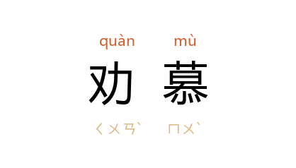 引汉 荀悦 《汉纪·惠帝纪》:“先王之制禄也,下足以代耕,上足以充祀。故食禄之家,不与下民争利,所以厉其公义,塞其私心。其或犯逾者,则绳以政法。是以君子劝慕,小人无怨。”《魏书·辛雄传》:“然兵将之勋,歷稔不决;亡军之卒,晏然在家。致令节士无所劝慕,庸人无所畏慑。”宋 曾巩 《代曾侍中辞转官札子》:“四方观听,知朝廷庆赏得宜,则众情必皆劝慕。”