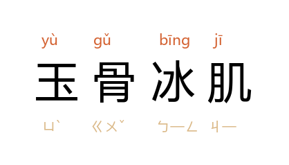 引宋 杨无咎 《柳梢青》词:“玉骨冰肌,为谁偏好,特地相宜,一段风流。”《再生缘》第二回:“生成玉骨冰肌态,长就兰襟蕙质心。”