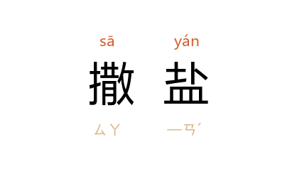 ⒈ 喻降雪。典出南朝宋刘义庆《世说新语·言语》:“谢太傅寒雪日内集,与儿女讲论文义。俄而雪骤,公欣然曰:'白雪纷纷何所似?'兄子胡儿曰:'撒盐空中差可拟。'兄女曰:'未若柳絮因风起。'公大笑乐。”