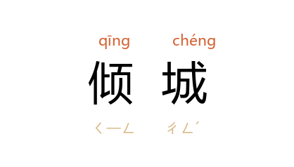 ⒉ 形容极为美丽动人。参见「倾国倾城」条。晋·陶渊明〈闲情赋〉:「表倾城之艳色,期有德于传闻。」唐·皇甫枚亦用以借指美人。清·况周颐〈 曲玉管·两桨春柔〉词:「夕阳衰草,满目江山,不见倾城。」