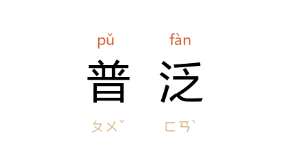 ⒈ 见“普汎”。亦作“普氾”。亦作“普泛”。遍及;普遍。