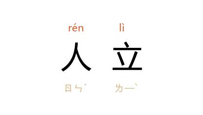 引《左传·庄公八年》:“﹝ 齐侯 ﹞射之,豕人立而啼。”宋 王安石 《阴山画虎图》诗:“逶迤一虎出马前,白羽横穿更人立。”清 和邦额 《夜谭随录·黑狐》:“予始登厕,即见一黑狐人立壁角。”