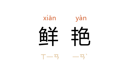 ⒈ 亦作“鲜艳”。鲜明艳丽。见“鲜艷”。