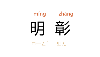 引《水浒传》第九十回:“今者拜辞还京,某等众兄弟此去前程如何,万望吾师明彰点化。”《初刻拍案惊奇》卷十三:“如今再説一个肆行不孝,到底不悛,明彰报应的。”《再生缘》第五二回:“艷冶妍辞情暗露,深怜厚爱意明彰。”