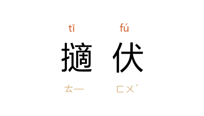 引南朝 梁元帝 《玄览赋》:“慕 张生 之擿伏,挹 边延 之励精。”《南史·王籍传》:“仕 齐 为 餘杭 令,政化如神,善於擿伏,自下莫能欺也。”唐 杨炯 《后周明威将军梁公神道碑》:“服叛怀远,擒姦擿伏。”