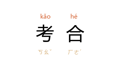 引《汉书·王嘉传》:“考合古今,明正其义,然后乃加爵土。”《后汉书·刘恺传》:“而今上司缺职,未议其人。臣窃差次诸卿,考合众议,咸称太常 朱倀 、少府 荀迁。”宋 赵令畤 《侯鲭录》卷五:“僕性喜讨论考合同异。”章炳麟 《辨诗》:“按《切韵》本考合南北正音,不失伦纪,《唐韵》因之。”