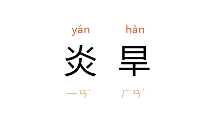 引三国 魏 曹植 《诰咎文》:“炎旱赫羲,颷风扇发,嘉卉以萎,良木以拔。”唐 李翱 《别灊山神文》:“遭罹炎旱, 淮 左毕同,邻郡逃亡,十家六空。”《法苑珠林》卷七九:“若炎旱时,能令净雨……疫死险难,皆得灭除。”