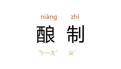 ⒈ 酝酿制造。利用酵素的发酵作用,将农产物制成饮料或食品。也作「酿造」。