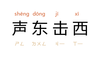 引语出《通典·兵六》:“声言击东,其实击西。”