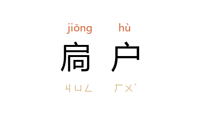 引唐 李白 《赠清漳明府侄聿》诗:“牛羊散阡陌,夜寝不扃户。”宋 洪迈 《夷坚丁志·留怙香囊》:“入室即扃户,非温凊与宾客至,輒不出。”明 冯梦龙 《智囊补·上智·郭子仪》:“崇垣扃户,不通内外。”清 葆光子 《物妖志·介类·赤蛇》:“自扃户就寝,天明起视,前鞋宛然在故处。”
