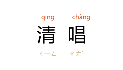 ⒊ 没音乐伴奏的演唱称为「清唱」。