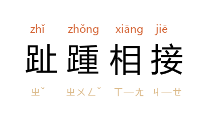 引梁启超 《变法通议·论师范》:“此外握风气之权者,为书院山长,为蒙馆学究,车载斗量,趾踵相接。”亦作“趾踵相错”。 《辛亥革命前十年间时论选集·革命制造厂》:“弃家逃威,望门投止者,趾踵相错。”