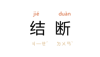 引《新唐书·徐有功传》:“唐 季人多逆节,鞫讯结断,刑惨狱严。”元 无名氏 《陈州粜米》第二折:“奉圣人的命,着老夫再差一员正直的去 陈州,结断此一桩公事。”《水浒传》第二七回:“本主 西门庆 妻子,留在本府羈管听候,等朝廷明降,方始结断。”