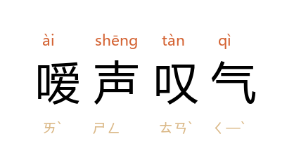 引《红楼梦》第三三回:“我看你脸上一团私欲愁闷气色!这会子又噯声叹气,你那些还不足、还不自在?”噯,一本作“咳”。 《二十年目睹之怪现状》第一〇二回:“只见一个人在那里和 亮臣 説话,不住的噯声叹气,满脸的愁眉苦目。”