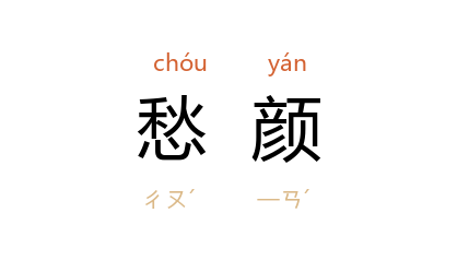 引唐 李白 《自梁园至敬亭山见会公谈陵阳山水兼期同游因有此赠》诗:“且寄一书札,令予解愁颜。”宋 柳永 《雪梅香》词:“临风,想佳丽,别后愁颜,镇敛眉峰。”清 姚潜 《饮孙子鱼琴来阁同汪度若吴方明曹殷六杜吹万》诗:“把酒心犹热,依人鬢早斑。 阮宣 钱已罄,赖尔破愁颜。”