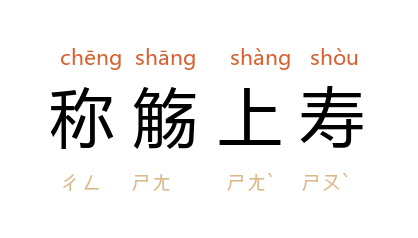 引《陈书·侯安都传》:“明日, 安都 坐于御坐,宾客居羣臣位,称觴上寿。”《北史·宇文护传》:“每四时伏腊, 武帝 率诸亲戚,行家人礼,称觴上寿,荣贵之极,振古未闻。”徐特立 《致张敬尧的公开信》:“营长做寿一次,由都总按户派捐,称觞上寿。”