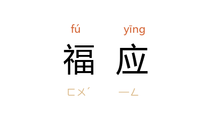 引汉 班固 《两都赋》序:“是以众庶悦豫,福应尤盛。”南朝 宋 颜延之 《又释何衡阳<达性论>》:“福应非他,气数所生,若灭福应,即无气数矣。”宋 曾巩 《熙宁转对疏》:“未有若是而福应不臻,而变异不消者也。”