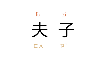 ⒉ 孔子弟子尊称孔子为夫子,故特指孔子。后世遂敬称老师为「夫子」。
