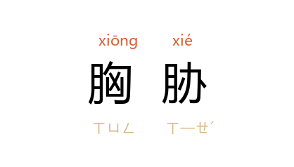 ⒈ 亦作“胸胁”。胸膛至腋下。亦谓近旁,近侧。