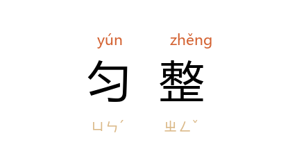 引清 冯班 《钝吟杂录》卷六:“唐 宋 人碑上行书,亦自匀整。”冰心 《分》:“窗外的雪不住的在下,扯绵搓絮一般,绿瓦上匀整的堆砌上几道雪沟。”