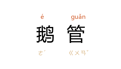 ⒉ 指笙。因笙上之管状如鹅毛管,故称。