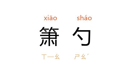 ⒈ 古乐名。《箫》,舜乐;《勺》,周乐。亦谓以《箫》《勺》之乐进行教化。