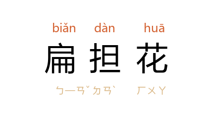 引《中国民间故事选·科斗毛人的故事》:“笼里关着一只大扁担花,四个士兵被压得汗流浃背,喘不过气来。”《中国民间故事选·科斗毛人的故事》:“白鼻子 土司王站在山顶上打望,只见扁担花像一阵风奔到 科斗毛人 把守的卡子跟前去了。”