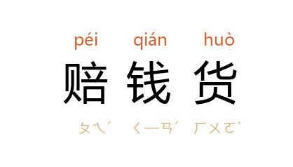 ⒈ 旧时女子不能外出赚钱,而嫁时又需陪送妆奁,因此称女子为「赔钱货」。元·王晔明·贾仲名也作「陪钱货」。