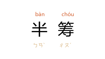 ⒈ 筹,算筹,引申为较量。半筹比喻小小的较量。元·无名氏《锁魔镜·第三折》:「喒两个横鎗跃马且交半筹,敢则一阵里抹了芒头。」