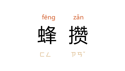 ⒈ 亦作“蠭攒”。如蜂之聚集。形容人多而乱。
