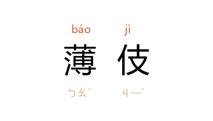 引汉 司马迁 《报任少卿书》:“主上幸以先人之故,使得奏薄伎,出入周卫之中。”北齐 颜之推 《颜氏家训·勉学》:“谚曰:‘积财千万,不如薄伎在身。’”清 唐甄 《潜书·食难》:“天下惟匹夫匹妇,无能、无所与之人,乃有死亡之患;其有薄伎者,虽困穷无伤也。”