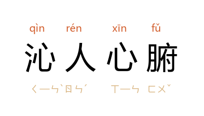 引明 沉德符 《野获编·词曲·时尚小令》:“比年以来,又有《打枣竿》、《掛枝儿》二曲……举世传诵,沁人心腑。”周而复 《上海的早晨》第四部十三:“老王 手里拿了五枝腊梅进来,上面真的只有少数花朵开放,散发出一股沁人心腑的清香。”