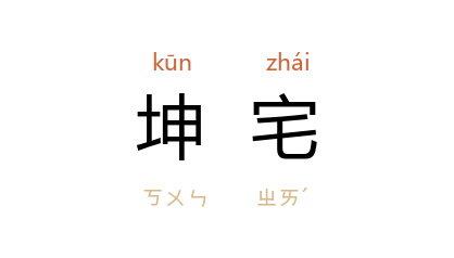 ⒈ 旧时缔婚,称女方的家为「坤宅」,男方的家为「乾宅」。