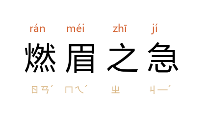 英语lit. the fire burns one's eyebrows (idiom); fig. desperate situation, extreme emergency