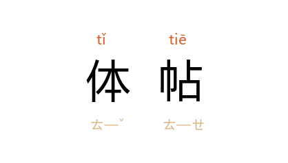 引明 高攀龙 《与季兄罗先生书》:“吾学虽有所受,然‘天理’二字却是自家体帖出来。”鲁迅 《华盖集续编·谈皇帝》:“据说天子的行事,是都应该体帖天意,不能胡闹的;而这‘天意’也者,又偏只有儒者们知道着。”