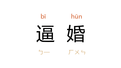 引《天雨花》第二一回回目:“慎思堂 戏探四宫娥, 迎风楼 逼婚三鼎甲。”沙陆墟 《魂断梨园》第二四回:“陈玉珍 听了这段话,暗忖:这个 侯巧凤 是 王晶安 派来逼婚的。”马云鹏 《雁塞游击队》第二章:“白要命 一看到 凤子,就又想起那次逼婚的失败,对 改改 就更加痛恨。”