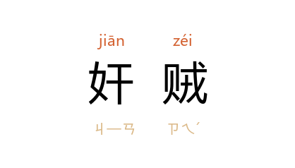 例如:「秦桧是南宋的奸贼,终不得好下场。」