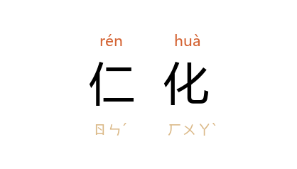 引三国 魏 曹植 《登台赋》:“扬仁化於宇内兮,尽肃恭於上京。”《后汉书·爰延传》:“后令 史昭 以为乡嗇夫,仁化大行。”《南史·庾黔娄传》:“先是县境多猛兽暴, 黔娄 至,猛兽皆度往 临沮 界,时以为仁化所感。”宋 苏舜钦 《论五事》:“如此则大益仁化,无亏国风。”